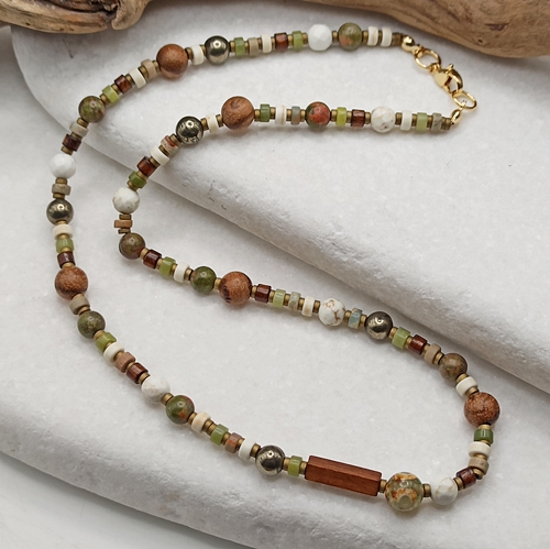 Naszyjnik unisex z kamieni naturalnych - kolory ziemi