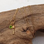 Naszyjnik Forest Muse ,delikatny ,krótki łańcuszek, złocony, zawieszka grzybek i oliwin w okuciu